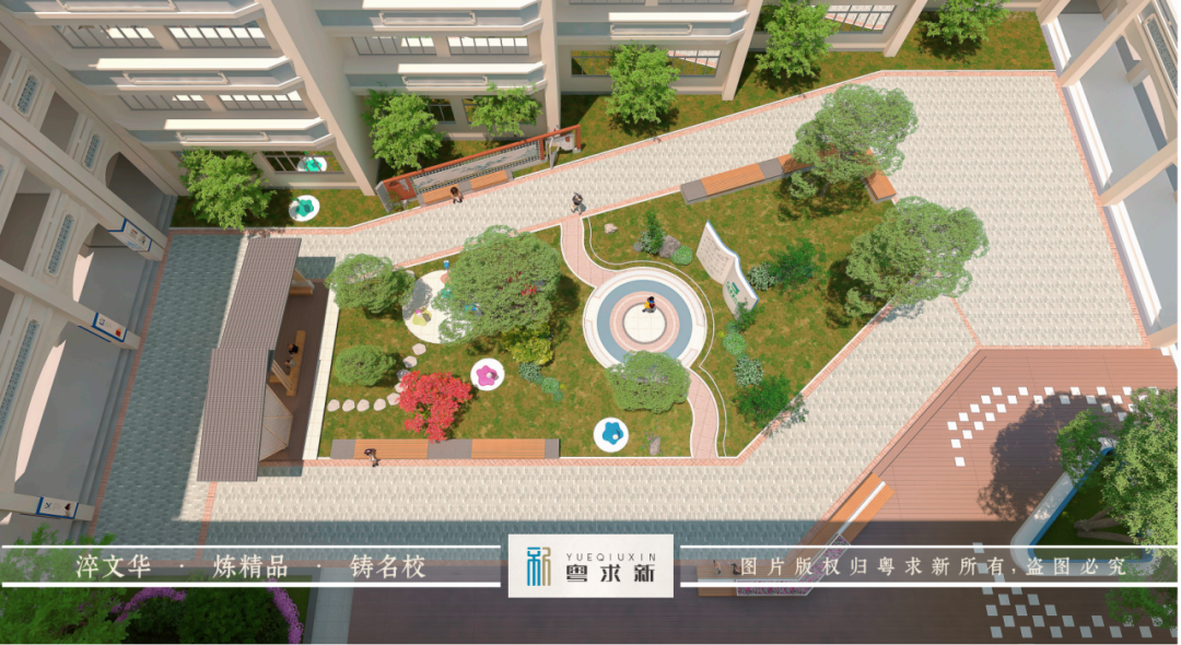 校门设计应与办学宗旨相契合。如:以倡导“创新”的学校为例,校门可采用动态结构设计。文化广场则需转变为“学生主场”,设置学生作品展区、校园议案公示栏,甚至留出一面空白墙供师生自由创作,让家长一踏入校园就能真切感受到“以生为本”的教育理念。