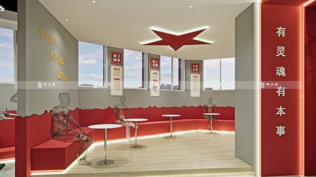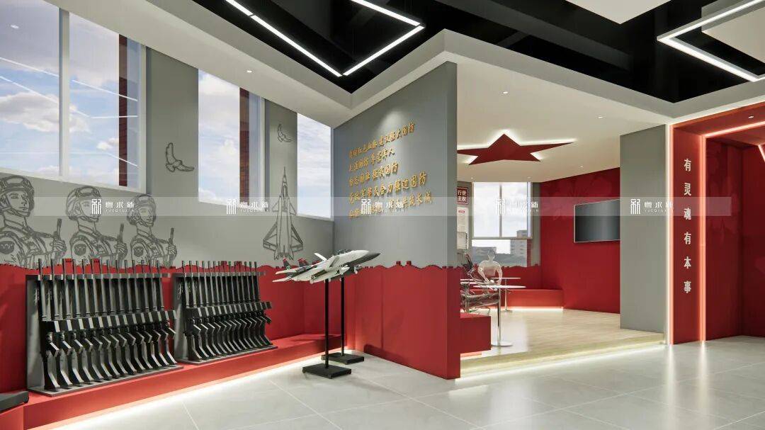 展墙成为无声的思政导师,每一道肌理都在诉说国防故事。这里的每一处细节都经过精心设计,旨在让红色基因通过视觉冲击与空间体验,潜移默化地融入青少年的精神世界,培育如军人般的责任感与使命感,让国防教育不再是生硬的概念,而是可感知、可触摸的精神传承。
