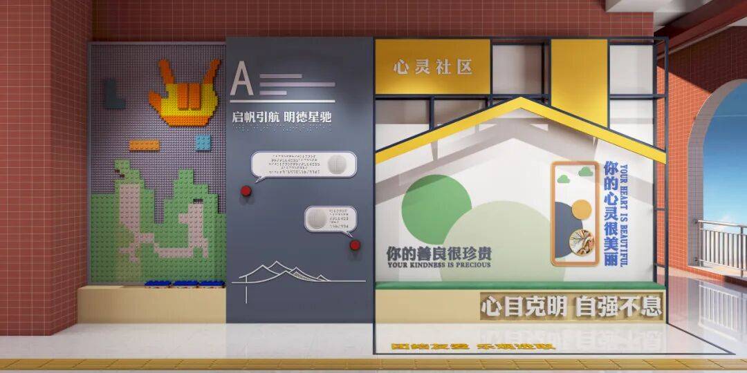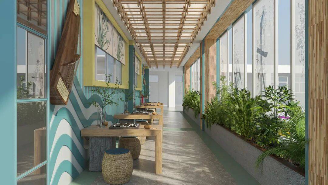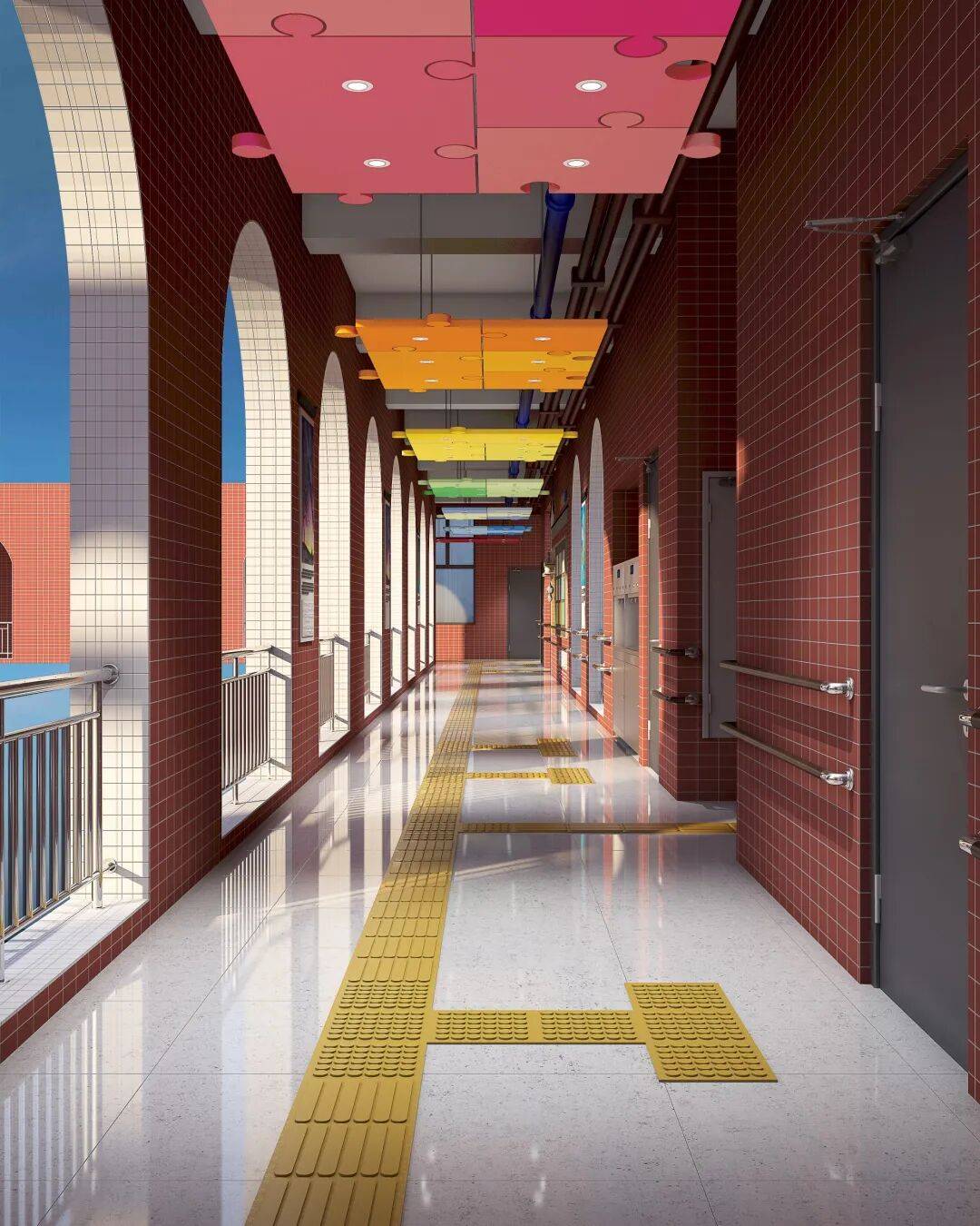 在校园的版图里,走廊不再是匆匆路过的过道,它还可以是孩子挥毫泼墨的艺术角,课间翻阅书本的小天地,温暖特殊孩子心灵的港湾。文化肌理融入设计细节,育人理念藏进转角风景,一条普通的走廊化身开放教育空间,让成长的每一步都有文化温度。