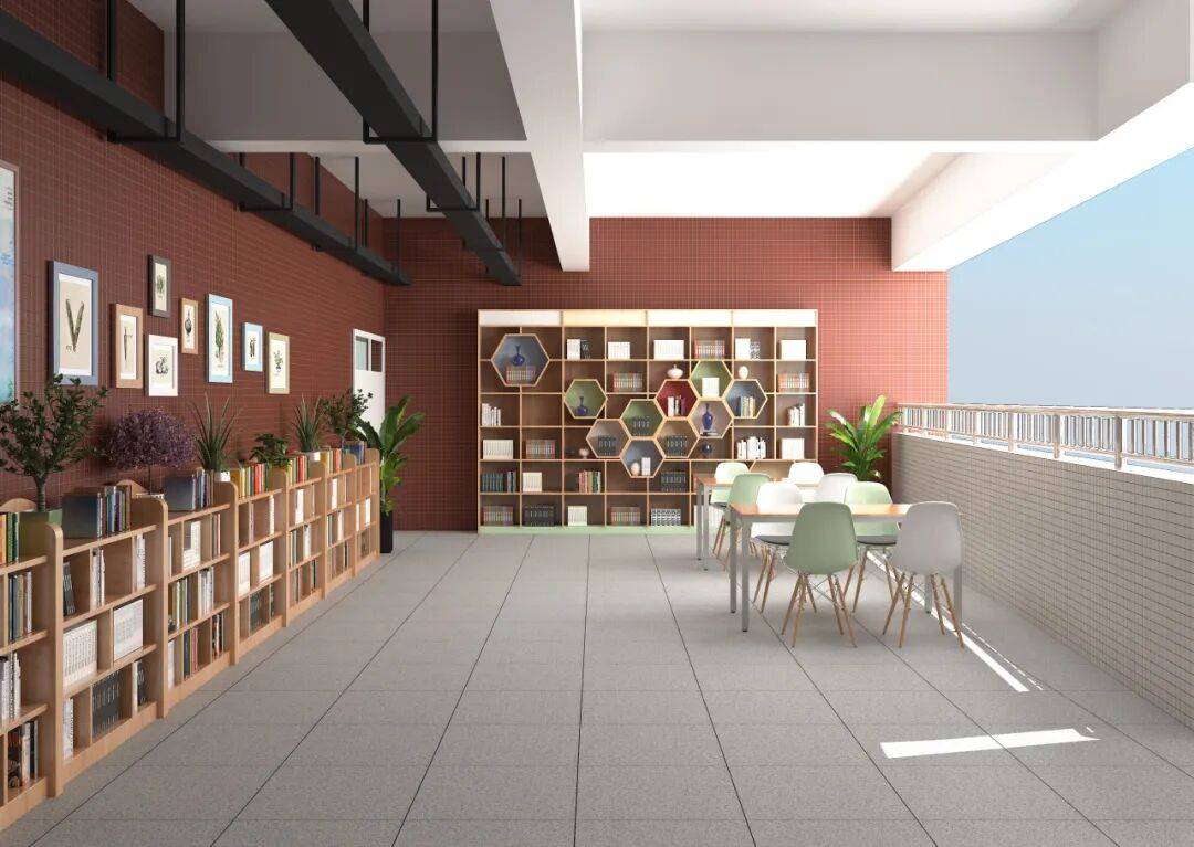 消解教室与图书馆的物理边界,提取岭南满洲窗的彩璃元素,结合红砖的厚重质感,在走廊搭起休闲阅读区,既保留教室的日常可达性,又赋予图书馆的文化沉浸感,让从教室到阅读的过渡自然无痕。
