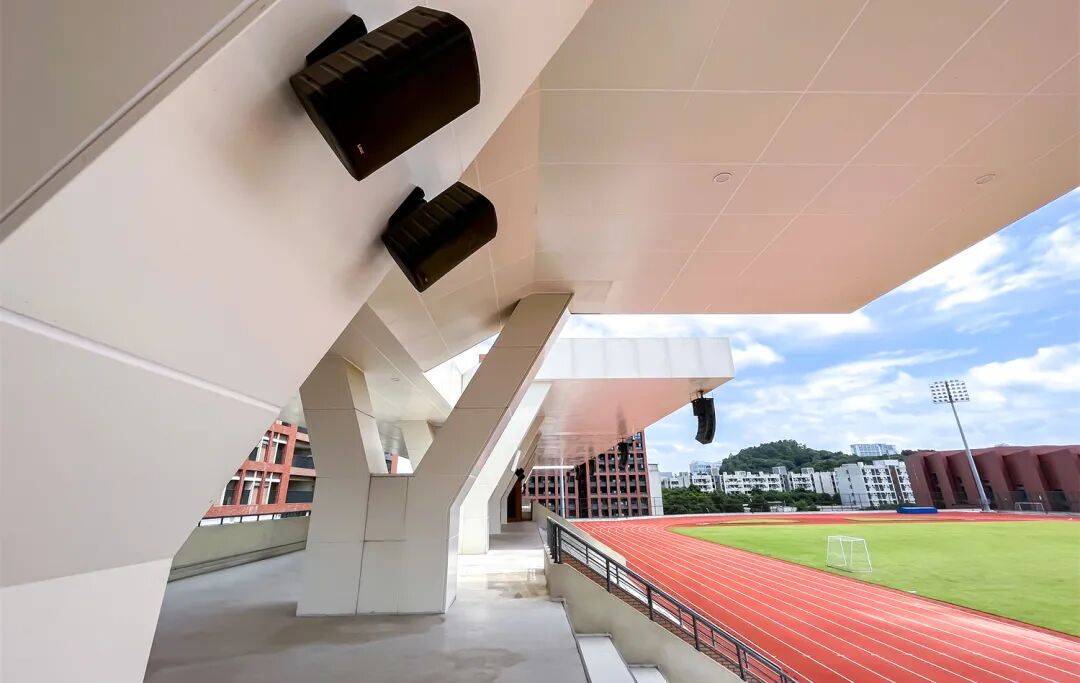 ① 专业扩声的“精准覆盖”:天河校区体育馆采用专业系列产品,实现声压级105dB、覆盖均匀度95%,既满足全国中学生运动会的专业赛事需求,又通过降噪设计使周边居民区噪声衰减60%;越秀校区户外体育场升级后,师生评价“即使坐在最后一排,也能清晰听见校长的致辞”。