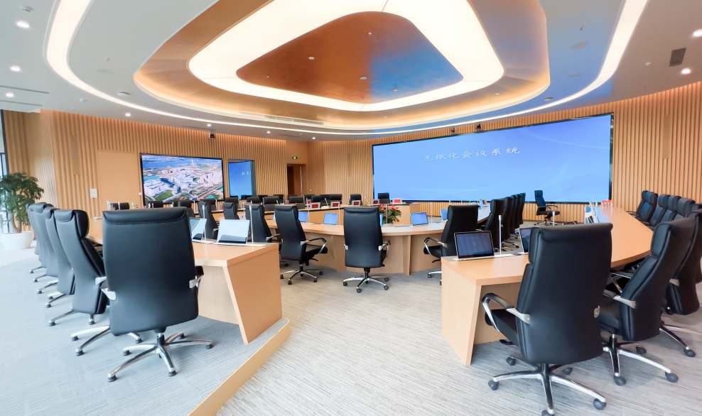 ③ 无纸化会议室的“高效决策”:采用无线手拉手系统,支持自由发言、主席优先、视频跟踪等功能,配合均匀分布的专业音箱,确保决策传达零偏差,会议效率提升40%。